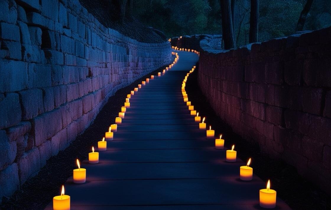 I heard the Spirit of the Living God of abundance and adventure say, As you walk along My way, the path I have laid out before you — that narrow but well lit path — you will see that I add My grace to it. You can perceive the road ahead, but you can’t make out more than the contours of it. You can see that I have lit enough of the path, so you can take the next step in front of you confidently.